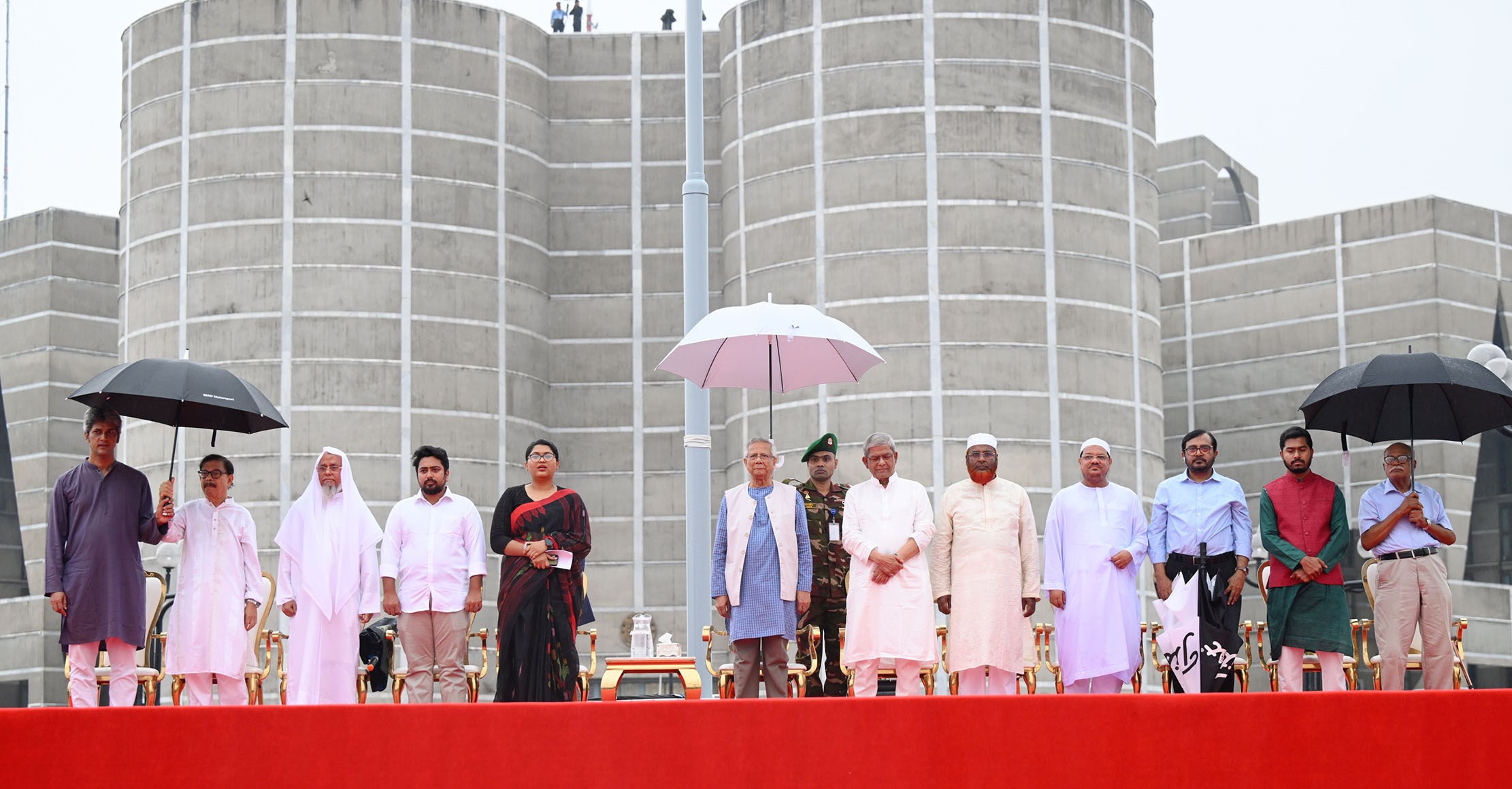 এর আগে প্রধান উপদেষ্টা ড. মুহাম্মদ ইউনূস জাতীয় সংসদের দক্ষিণ প্লাজায় জুলাই গণঅভ্যুত্থানের ঘোষণাপত্র প্রকাশ অনুষ্ঠানে যোগ দেন। বিকেল পাঁচটার দিকে তিনি যখন মঞ্চের দিকে যাচ্ছিলেন তখন তার সাথে বিভিন্ন রাজনৈতিক দলের নেতাদের তার সাথে দেখা যায়।