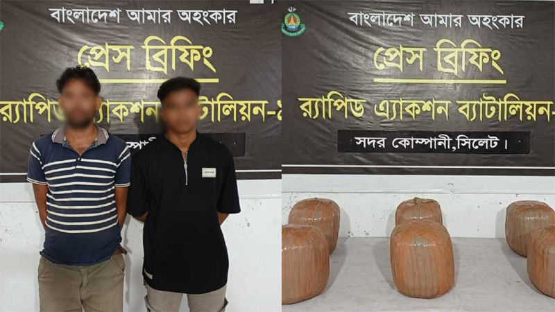 র্যাব সূত্র জানিয়েছে, বৃহস্পতিবার বিকেলে র্যাব-৯ নগরীর দক্ষিণ সুরমার চন্ডিপুলে চেকপোস্ট বসিয়ে যানবাহন তল্লাশি করা হচ্ছিল। এসময় একটি প্রাইভেটকারকে থামার সংকেত দিলে কারটি থামিয়ে দুই যুবক কৌশলে পালানোর চেষ্টা কালে র্যাব তাদেরকে আটক করে। পরে প্রাইভেটকার তল্লাশি করে ৩০ কেজি গাঁজা উদ্ধার করা হয়। হবিগঞ্জের মাধবপুর থেকে গাঁজা সংগ্রহ করে সিলেট শহরে নিয়ে আসছিল বলে জিজ্ঞাসাবাদে র্যাবকে জানিয়েছে তারা।