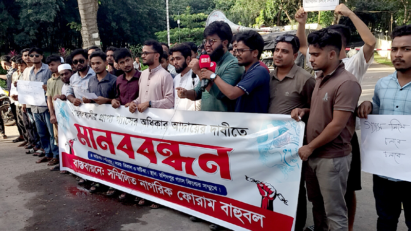 মানববন্ধন শেষে উপস্থিত জনতা এক কণ্ঠে বলেন “আমাদের গ্যাস, আমাদের অধিকার—বাহুবলবাসী আর বঞ্চিত নয়!”