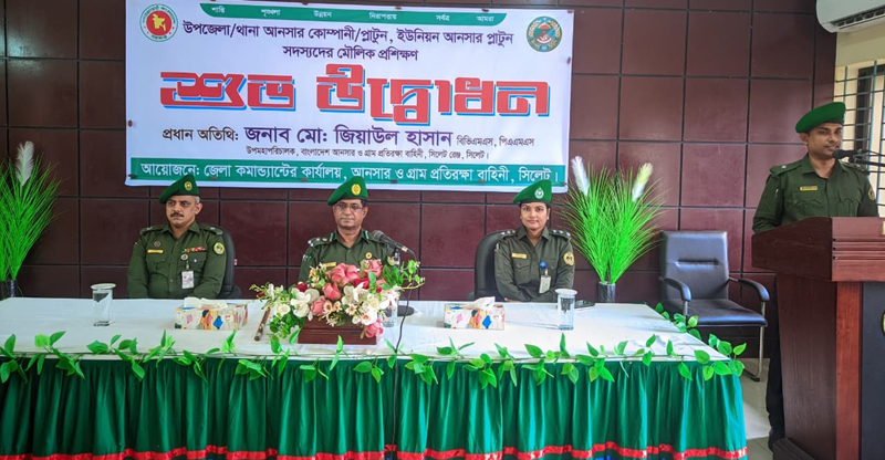 সিলেট জেলা আনসার ভিডিপি প্রশিক্ষণ কেন্দ্রের হলরুমে মৌলিক প্রশিক্ষণের উদ্বোধন অনুষ্ঠানে প্রধান অতিথি হিসেবে উপস্থিত ছিলেন সিলেট রেঞ্জের উপমহাপরিচালক মোঃ জিয়াউল হাসান, বিভিএমএস, পিএএমএস।