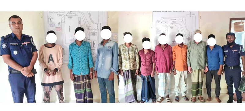গ্রেফতারকৃত আসামীরা হলেন- উপজেলার বাঘাডহর গ্রামের আইনুদ্দিন, কাশেমনগর গ্রামের জালাল উদ্দিন, জামাল উদ্দিন, পূর্ব হাতলিয়া গ্রামের জসিম উদ্দিন, পূর্ব-দোহালিয়া দক্ষিণভাগ গ্রামের সুমন মিয়া, উওর সুজানগর গ্রামের মো. নজরুল ইসলাম, উত্তর ডিমাই গ্রামের বাবলা মিয়া, সাতকরাকান্দি গ্রামের দেলোয়ার হোসেন ও মো. শাহীন উল্লাহ। থানার ওসি মোহাম্মদ মাহবুবুর রহমান মোল্লা জানান, বুধবার বিকেলে বিভিন্ন মামলায় গ্রেফতার আসামিদের আদালতে সোপর্দ করা হয়েছে।