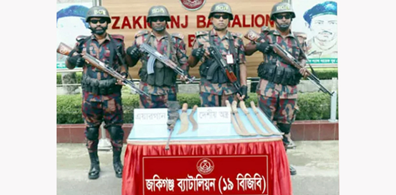 জৈন্তায় বিজিবির অভিযানে দেশীয় অস্ত্রসহ চোরাইপণ্য জব্দ