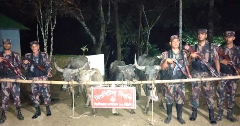 জানা গেছে, চোরাকারবারিরা বিজিবি বিওসি টিলা বিওপির আওতাধীন সীমান্ত দিয়ে ভারতীয় মহিষ পাচার করছিল। এসময় বিজিবির টহল দল ধাওয়া করে উপজেলার দক্ষিণভাগ দক্ষিণ ইউনিয়নের সীমান্তবর্তী সমনবাগ চা বাগানের অভ্যন্তর থেকে চারটি ভারতীয় মহিষ আটক করে। বিজিবির ধাওয়ায় চোরাকারবারিরা পালিয়ে যায়। বিজিবি-৫২ ব্যাটালিয়নের অধিনায়ক লে. কর্ণেল মোহাম্মদ আরিফুল হক চৌধুরী জানান, আটক ভারতীয় মহিষগুলো জুড়ী কাষ্টমসে জমা দেওয়া হয়েছে।
