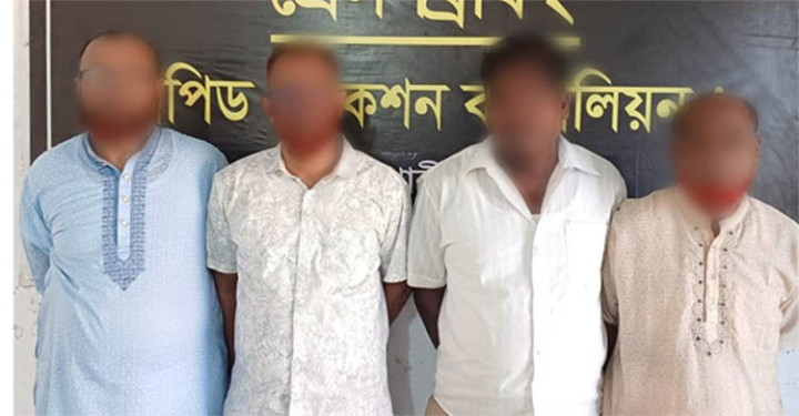 আটককৃতরা হলেন- হবিগঞ্জ জেলার মাধবপুর থানার ভান্ডারিয়া গ্রামের মৃত কাশেম আলীর পুত্র মো. আইয়ুব আলী (৬৭), গাজীপুর জেলার কালিয়াকৈর থানার বাশতলী গ্রামের মৃত নুর মোহাম্মদের পুত্র মো. আবুল হাসেম (৪৩), কুমিল্লা জেলার ব্রাহ্মণপাড়া থানার সিদলাই গ্রামের মৃত সেকান্দার আলীর পুত্র আতাউর রহমান (৫৭) ও সিলেট জেলার গোয়াইনঘাট থানার ইসলামাবাদ গ্রামের মৃত আলকাস মিয়ার পুত্র নজরুল ইসলাম (৫২)।