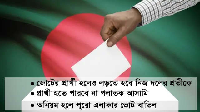 আগে ভোটের সময় জোটভুক্ত হয়ে জনপ্রিয় বা বড় দলের প্রতীকে ভোট করার সুযোগ ছিল। এবার সে সুযোগ থাকছে না। নির্বাচনি জোট হলে, জোটের অংশ হলেও দলের প্রতীকে ভোট করতে হবে; যাতে ভোটাররা ক্লিয়ার আইডিয়া পায় উনি কোন দলের।