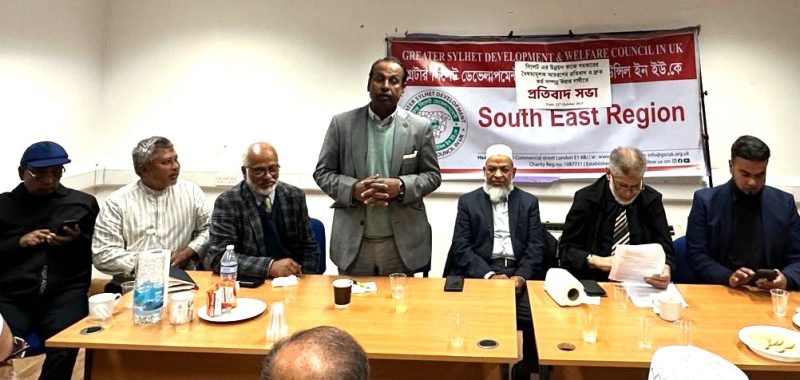 গ্রেটার সিলেট ডেভেলপমেন্ট এন্ড ওয়েলফেয়ার কাউন্সিল ইউকে সাউথ ইস্ট রিজিওন-এর উদ্যোগে সিলেট-এর উন্নয়ন কাজে সরকারের বৈষম্যমূলক আচরণের প্রতিবাদ ও দ্রুত কর্ম সম্পন্ন করার দাবিতে এক প্রতিবাদ সভা গত ২২অক্টোবর জিএসসির কেন্দ্রীয় কার্যালয়ে অনুষ্ঠিত হয়। উক্ত সভায় সভাপতিত্ব করেন সংগঠনের চেয়ারপার্সন খলিল আহমদ কবীর।