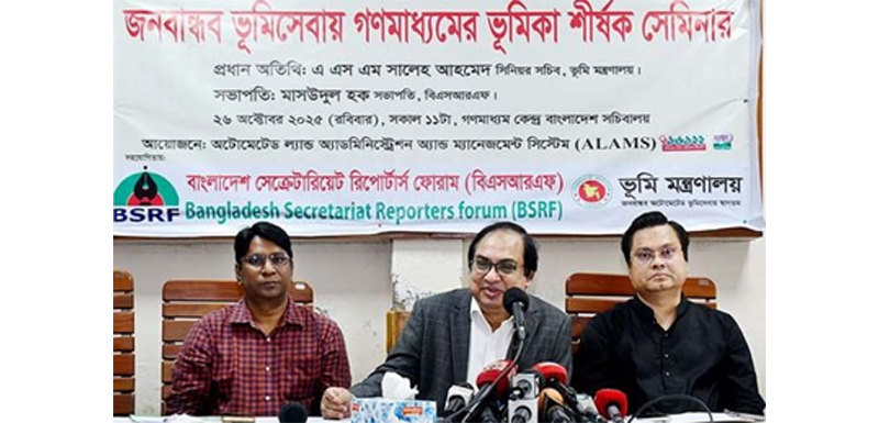 সচিব রোববার সচিবালয়ে গণমাধ্যম কেন্দ্রে ‘জনবান্ধব ভ‚মি সেবায় গণমাধ্যমের ভ‚মিকা’ শীর্ষক সেমিনারে এসব কথা বলেন।বাংলাদেশ সেক্রেটারিয়েট রিপোর্টার্স ফোরাম (বিএসআরএফ)-এর উদ্যোগে এবং ভ‚মি মন্ত্রণালয়ের অটোমেটেড ল্যান্ড অ্যাডমিনিস্ট্রেশন অ্যান্ড ম্যানেজমেন্ট সিস্টেম (এএলএএমএস)-এর সহায়তায় সেমিনারটি অনুষ্ঠিত হয়।