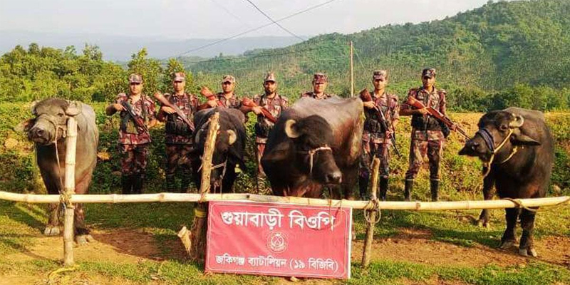 বিজ্ঞপ্তিতে বলা হয়, গোপন সংবাদের ভিত্তিতে খবর পেয়ে বুধবার রাতে বিজিবির জৈন্তাপুর ও গোয়াবাড়ি বিওপির আভিযানিক দল সীমান্ত এলাকায় অভিযান পরিচালনা করে। এ সময় মালিকবিহীন অবস্থায় ৪টি মহিষ ও ২টি গরু আটক করা হয়। এসবের আনুমানিক সিজারমূল্য ১১ লাখ ৭০ হাজার টাকা। অপর দিকে গতকাল বৃহস্পতিবার সকালে জৈন্তাপুর বিওপির একটি অভিযানিক দল অভিযান চালিয়ে ২টি ভারতীয় মহিষ আটক করেছে। যার আনুমানিক সিজারমূল্য ৪ লাখ টাকা। ৬টি মহিষ ও ২টি গরুর মোট বাজার মূল্য প্রায় ১৫ লাখ ৭০ হাজার টাকা বলে জানায় বিজিবি। বিজিবি জানায়, সীমান্ত এলাকায় চোরাচালান রোধে নিয়মিত অভিযান অব্যাহত থাকবে।