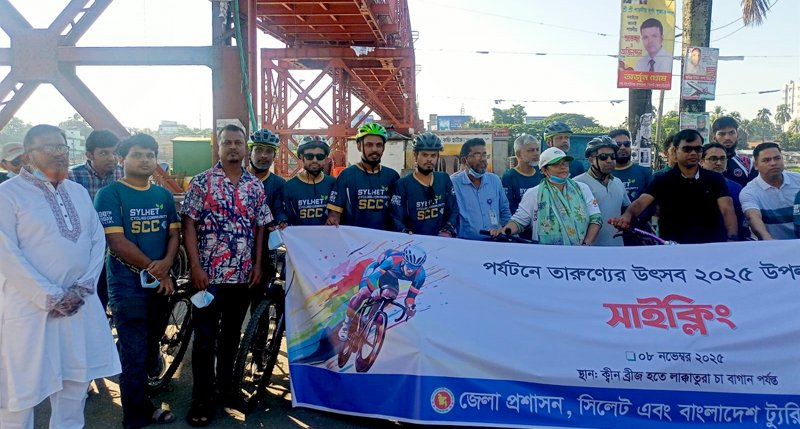বাংলাদেশ ট্যুরিজম বোর্ডের উদ্যোগে ও সিলেট জেলা প্রশাসনের সহযোগিতায় ‘পর্যটনে তারুণ্য উৎসব ২০২৫’- উপলক্ষে সিলেটে সাইক্লিং ও পরিষ্কার-পরিচ্ছন্নতা কর্মসূচির উদ্বোধন করা হয়েছে। শনিবার সকালে নগরীর সারদা হলের সামনে ক্বীনব্রীজ এর নিচে এই কর্মসূচির উদ্বোধন করা হয়।