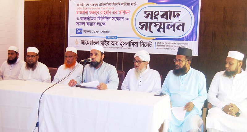 জামেয়াতুল খাইর আল ইসলামিয়া সিলেট আন্তর্জাতিক ফিলিস্তিন সম্মেলন করতে যাচ্ছে। আগামী ১৭ নভেম্বর সিলেট সরকারি আলিয়া মাদ্রাসা মাঠে এ সম্মেলন অনুষ্ঠিত হবে। সম্মেলনে প্রধান অতিথি হিসেবে উপস্থিত থাকবেন জমিয়তে উলামায়ে ইসলাম পাকিস্তানের আমীর মাওলানা ফজলুর রহমান। সোমবার সিলেট প্রেসক্লাবে আয়োজিত সংবাদ সম্মেলনে এ তথ্য জানানো হয়েছে।