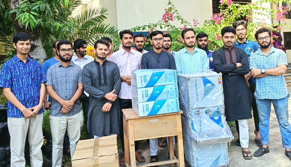 শাহজালাল বিজ্ঞান ও প্রযুক্তি বিশ্ববিদ্যালয়ে নারী শিক্ষার্থীদের বিশুদ্ধ পানির সংকট নিরসনে পানির ফিল্টার বিতরণ করেছে বাংলাদেশ ইসলামী ছাত্রশিবিরের শাবিপ্রবি শাখা।