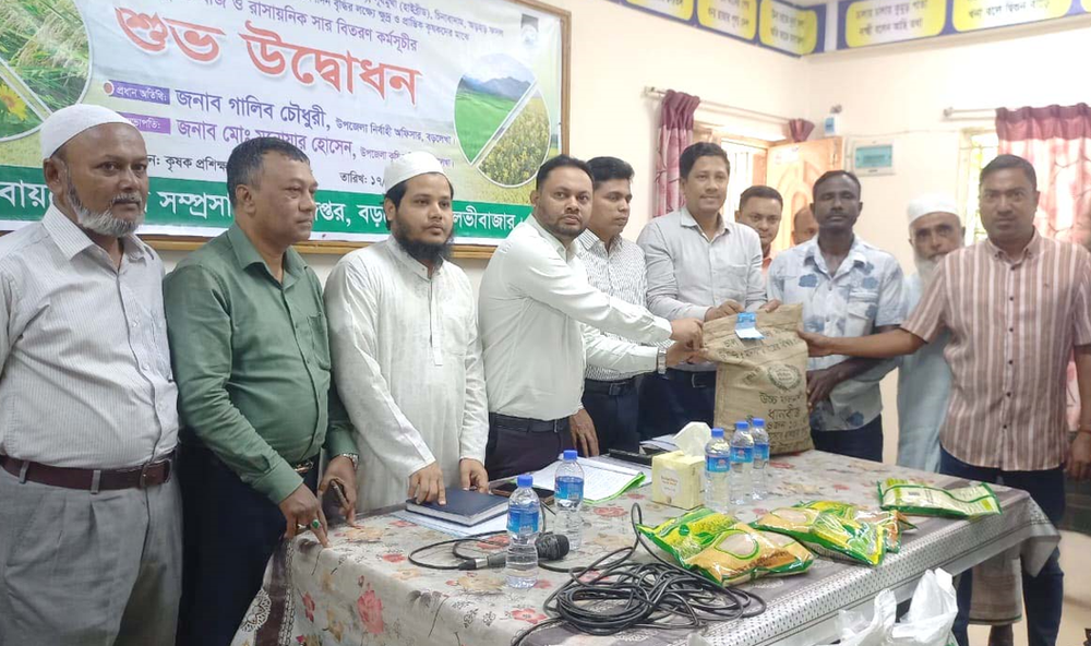 সোমবার দুপুরে প্রধান অতিথি হিসেবে বীজ ও সার বিতরণ কার্যক্রমের উদ্বোধন করেন উপজেলা নির্বাহী অফিসার গালিব চৌধুরী।
