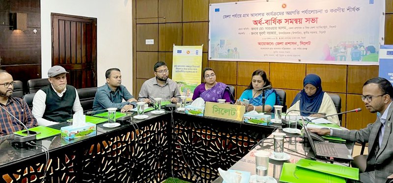 সিলেটে গ্রাম আদালত প্রকল্পের কার্যক্রমের অগ্রগতি ও করনীয় বিষয়ে জেলা পর্যায়ে অর্ধ বার্ষিক সমন্বয় সভা বুধবার অনুষ্ঠিত হয়েছে। সিলেটের জেলা প্রশাসকের সম্মেলনকক্ষে আয়োজিত সভায় সভাপতিত্ব করেন স্থানীয় সরকার বিভাগের উপ পরিচালক সুবর্ণা সরকার।