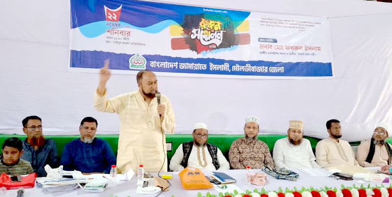 মৌলভীবাজার প্রতিনিধি: বাংলাদেশ জামায়াতে ইসলামী কেন্দ্রীয় কর্মপরিষদ সদস্য ও সিলেট মহানগরী আমীর মো. ফখরুল ইসলাম বলেছেন, ইসলামী শক্তির পক্ষে যেভাবে ব্যাপক গণজোয়ার তৈরি হয়েছে, আমাদের প্রার্থী ও প্রতীক নিয়ে প্রত্যেক ভোটারের দোয়ারে দোয়ারে ব্যাপক ভাবে যেতে হবে। এক্ষেত্রে রুকনদের অগ্রণী ভূমিকা পালন করতে হবে। তিনি শনিবার দুপুর ১২টায় স্থানীয় সাইফুর রহমান অডিটোরিয়ামে মৌলভীবাজার জেলা জামায়াতের রুকন সম্মেলনে প্রধান অতিথির বক্তব্যে উপরোক্ত কথা বলেন। জেলা জামায়াতের আমীর ও মৌলভীবাজার- ২ (কুলাউড়া) সংসদীয় আসনের এমপি পদপ্রার্থী ইঞ্জিনিয়ার এম শাহেদ আলীর সভাপতিত্বে ও জেলা সেক্রেটারী প্রিন্সিপাল মোঃ ইয়ামীর আলীর সঞ্চালনায় অনুষ্ঠিত সম্মেলনে আরো উপস্থিত ছিলেন মৌলভীবাজার-১ আসনে জামায়াত মনোনীত সংসদ সদস্য পদপ্রার্থী মাওলানা আমিনুল ইসলাম, জেলা নায়েবে আমীর মাওলানা আব্দুর রহমান, জেলা এসিস্ট্যান্ট সেক্রেটারি শাহ আলাউদ্দিন,আজিজ আহমদ কিবরিয়া, মাওলানা হারুনুর রশিদ তালুকদার প্রমূখ। প্রাণবন্ত এ সম্মেলনে পুরুষ ও মহিলাসহ প্রায় ছয়শত রুকন ডেলিগেট উপস্থিত ছিলেন।