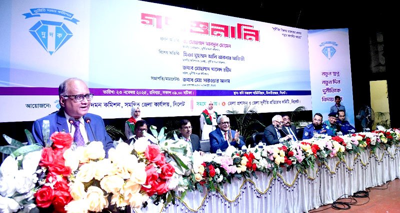 রোববার সিলেটে দুর্নীতি দমন কমিশন (দুদক)-এর সমন্বিত জেলা কার্যালয়ের আয়োজনে রিকাবিবাজারস্থ কবি নজরুল অডিটোরিয়ামে গণশুনানিতে প্রধান অতিথি হিসেবে উপস্থিত ছিলেন দুদক চেয়ারম্যান ড. মোহাম্মদ আবদুল মোমেন।