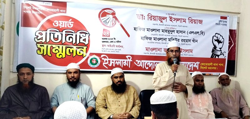 ইসলামী আন্দোলন বাংলাদেশ সিলেট মহানগরের কোতোয়ালী থানার ওয়ার্ড প্রতিনিধি সম্মেলন সোমবার বিকাল ৩টায় অনুষ্ঠিত হয়। এতে প্রধান অতিথির বক্তব্য রাখেন ইসলামী আন্দোলন বাংলাদেশ এর কেন্দ্রীয় মজলিসের শূরা সদস্য ও সিলেট মহানগর সভাপতি ডা. রিয়াজুল ইসলাম রিয়াজ।