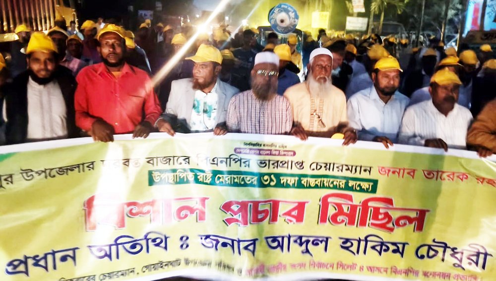 জৈন্তাপুর দরবস্তে ৩১ দফার সমর্থনে হাকিম চৌধুরীর প্রচার মিছিল