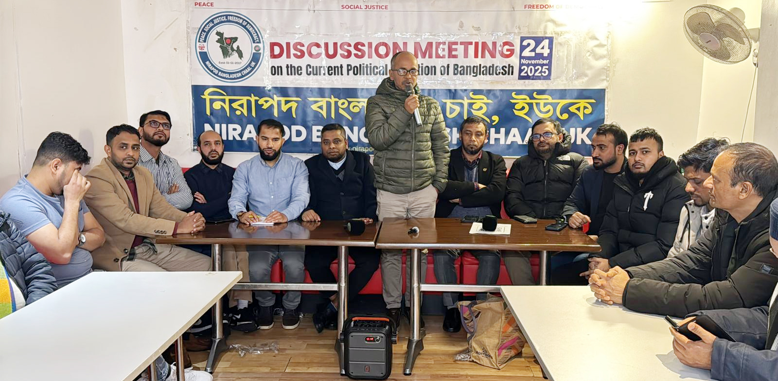 বাংলাদেশে রাজনৈতিক পরিস্থিতির উন্নয়ন ও সুষ্ঠু নির্বাচন এবং শেখ হাসিনাসহ আওয়ামী লীগের চিহ্নিত খুনিদের ফাঁসি কার্যকরের দাবিতে যুক্তরাজ্যে এক আলোচনা সভা অনুষ্ঠিত হয়েছে। স্থানীয় সময় সোমবার সন্ধ্যায় পূর্ব লন্ডনের মক্কা গ্রীরিল-এর মিটিং রুমে যুক্তরাজ্যভিত্তিক মানবাধিকার সংগঠন ‘নিরাপদ বাংলাদেশ চাই ইউকে’র উদ্যোগে উক্ত সভা অনুষ্ঠিত হয়।