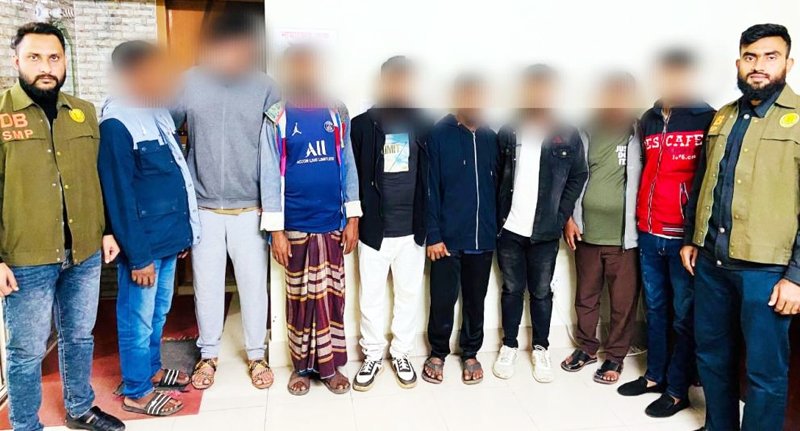 আটককৃতরা হলেন- শামীমাবাদ এলাকার ২নং রোডের ৭নং বাসার মৃত হাফিজ উদ্দিনের ছেলে জাহাঙ্গীর আলম (২৩), হবিগঞ্জে লাখাই থানার সিংহ গ্রামের আরজু মিয়ার ছেলে বশির আহমদ (৩৮), সুনামগঞ্জ সদর থানার আমপাড়া গ্রামের মৃত তাজুল ইসলামের ছেলে ফারুক আহমদ (২৯), দোয়ারাবাজারের মানিকপুর গ্রামের মৃত ছায়েদ আলীর ছেলে আহমদ আলী (৩২), পশ্চিম কাজলশাহ এলাকার ২নং বাসার আব্দুল আহাদের ছেলে ফয়েজ আলম রাজ (৩২), সুনামগঞ্জের ছাতক থানার হায়দরপুর ভাতগাঁও গ্রামের মৃত তফজ্জুল আলীর ছেলে আক্তার হোসেন (৩৮), একই জেলার জগন্নাথপুর থানার সৈয়দপুর গ্রামের খয়রুল্লাহ ছেলে আল আমিন (৩৮) ও দোয়ারাবাজার থানার আমবাড়ি গ্রামের মৃত আব্দুল কাদিরের ছেলে আব্দুল বাছিত (২৫)।
