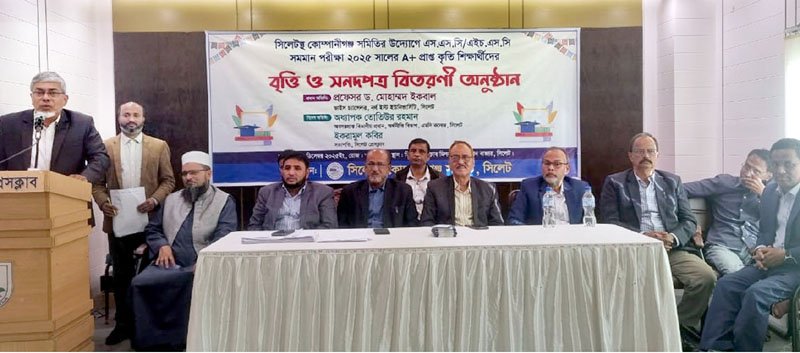 সিলেটস্থ কোম্পানীগঞ্জ সমিতির উদ্যোগে এসএসসি-এইচএসসি উত্তীর্ণ-২০২৫ সালে এ প্লাস প্রাপ্ত শিক্ষার্থীদের বৃত্তি এবং সনদ প্রদান অনুষ্ঠান শনিবার দুপুরে সিলেট প্রেসক্লাব হলরুমে অনুষ্ঠিত হয়।বৃত্তি ও সনদ প্রদান অনুষ্ঠানে প্রধান অতিথির বক্তব্য রাখেন নর্থ ইস্ট ইউনিভার্সিটির ভাইস চ্যান্সেলর অধ্যাপক ড. মোঃ ইকবাল।