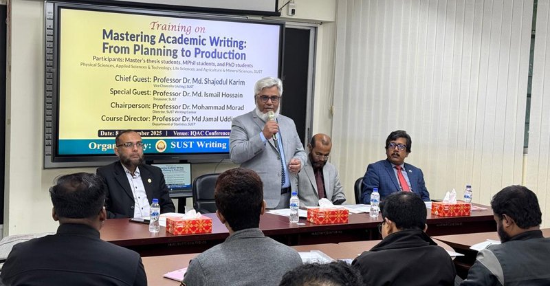 বিশেষ অতিথির বক্তব্যে কোষাধ্যক্ষ অধ্যাপক ড. মোঃ ইসমাইল হোসেন বলেন, বিশ্ববিদ্যালয় কেবল শিক্ষাদানের স্থান নয়, এটি একটি একাডেমিক এক্সিলেন্স হাব, যেখানে জ্ঞানচর্চা ও গবেষণার উৎকর্ষ সাধনই মূল লক্ষ্য। আমরা যত ভালো গবেষণা-কার্যই পরিচালনা করি না কেন তা প্রকাশিত না হলে তার প্রকৃত মূল্যায়ন সম্ভব নয়। গবেষণাকে মূল্যবান ও প্রভাবশালী করতে প্রকাশনা অপরিহার্য। অনুষ্ঠানে সভাপতিত্ব করেন সাস্ট রাইটিং সেন্টারের পরিচালক অধ্যাপক ড. মুহাম্মদ মুরাদ। সঞ্চালনা করেন অধ্যাপক ড. মোঃ জামাল উদ্দিন।