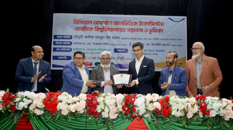 স্টাফ রিপোর্টার : বাংলাদেশের অর্থনীতিকে ত্বরান্বিত করতে হলে সবাইকে দায়িত্বশীল ভূমিকা রাখতে হবে বলে মন্তব্য করেছেন বাংলাদেশ বিনিয়োগ উন্নয়ন কর্তৃপক্ষের (বিডা) চেয়ারম্যান চৌধুরী আশিক মাহমুদ বিন হারুন। তিনি বলেন, পূর্ববর্তী প্রজন্মের মতো একই ইনপুট দিলে একই আউটপুটই আসবে, এটি স্বাভাবিক। তাই নতুন প্রজন্মকে ভিন্নভাবে ভাবতে হবে, নতুন কিছু সৃষ্টি করতে হবে। তিনি বুধবার (১০ ডিসেম্বর) রাতে শাহজালাল বিজ্ঞান ও প্রযুক্তি বিশ্ববিদ্যালয়ের আয়োজনে বিশ্ববিদ্যালয়ের সেন্ট্রাল অডিটোরিয়ামে ‘বিনিয়োগ আকর্ষণে জ্ঞানভিত্তিক ইকোসিস্টেম: পাবলিক বিশ্ববিদ্যালয়ের সম্ভাবনা ও ভূমিকা’ শীর্ষক সেমিনারে প্রধান অতিথির বক্তব্যে এ কথা বলেন।