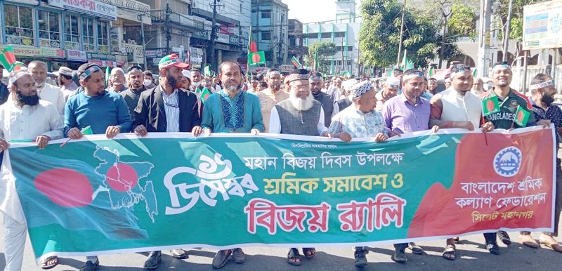 তিনি মঙ্গলবার মহান বিজয় দিবস উপলক্ষে বাংলাদেশ শ্রমিক কল্যাণ ফেডারেশন সিলেট মহানগর আয়োজিত বিজয় র্যালী পরবর্তী শ্রমিক সমাবেশে প্রধান অতিথির বক্তব্যে উপরোক্ত কথা বলেন। মিছিলটি নগরীর রেজিস্ট্রারি মাঠ থেকে শুরু হয়ে বিভিন্ন পয়েন্ট প্রদক্ষিণ করে ফের রেজিস্ট্রারি মাঠে গিয়ে সমাপ্ত হয়।