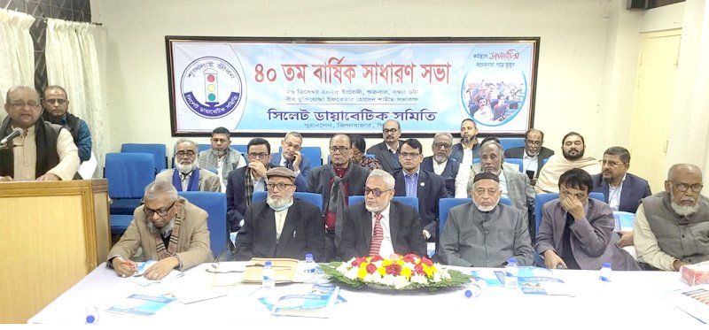 শুক্রবার সন্ধ্যায় সিলেট শহরের জিন্দাবাজার, পুরানলেনস্থ সিলেট ডায়াবেটিক সমিতির বীর মুক্তিযোদ্ধা ইফতেখার হোসেন শামীম সভাকক্ষে সিলেট ডায়াবেটিক সমিতির ৪০তম বার্ষিক সাধারন সভা ও ত্রি-বার্ষিক নির্বাচনের ফলাফল ঘোষনা অনুষ্ঠান অনুষ্ঠিত হয়। সভায় সভাপতিত্ব করেন সমিতির সহ-সভাপতি অধ্যাপক ডা. শিব্বির আহমদ শিবলী। সিলেট ডায়াবেটিক এন্ড জেনারেল হাসপাতালের অফিস সহকারী মো: লিয়াকত হোসেন এর পরিচালনায় অনুষ্ঠিত সভার শুরুতেই পবিত্র কোরআন তেলাওয়াত করেন হাসপাতালের সহকারী স্টোর কীপার এ.এইচ.এম. সালেহ ইব্রাহিম, পবিত্র গীতা থেকে শ্লোক পাঠ করেন আমন্ত্রিত অতিথি এডভোকেট বিজয় কৃষ্ণ বিশ্বাস ।