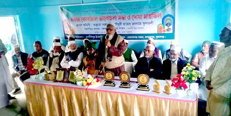 বক্তব্য রাখেন, হাজী ছালামত স্মৃতি উচ্চ বিদ্যালয়ের অবসরপ্রাপ্ত প্রধান শিক্ষক হুমায়ুন কবীর, সফাৎ উল্লাহ উচ্চ বিদ্যালয়ের অবসরপ্রাপ্ত প্রধান শিক্ষক সাব্বির আহমেদ ও হাতিয়া, নাচনী ও কাতিয়া আলিম মাদ্রাসার সুপার মুফতী মাওলানা আবু সাঈদ সৈয়দ এবং জগদীশপুর ইসলামীয়া দাখিল মাদ্রাসার কোষাধ্যক্ষ মোঃ সুহেল আহমদ, জগন্নাথপুর উপজেলা প্রেসক্লাব সাধারণ সম্পাদক মোঃ শাহজাহান মিয়া, লতিফিয়া ক্বারী সোসাইটি জগন্নাথপুর উপজেলা কমিটির সাধারণ সম্পাদক মাওলানা নূর আহমদ, জগদীশপুর ইসলামীয়া দাখিল মাদ্রাসা পরিচালনা কমিটির সহ-সভাপতি দিলোয়ার হোসেন দুলা, সদস্য, মোঃ আব্দুল গফফার প্রমূখ।