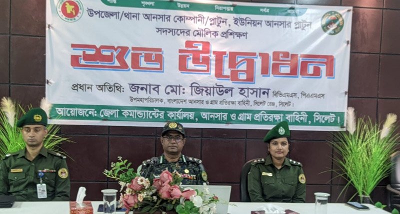 সিলেট জেলা আনসার ও ভিডিপি প্রশিক্ষণ কেন্দ্রের হলরুমে মৌলিক প্রশিক্ষণের উদ্বোধন অনুষ্ঠানে প্রধান অতিথি হিসেবে উপস্থিত ছিলেন সিলেট রেঞ্জের উপমহাপরিচালক মো. জিয়াউল হাসান, বিভিএমএস, পিএএমএস।
