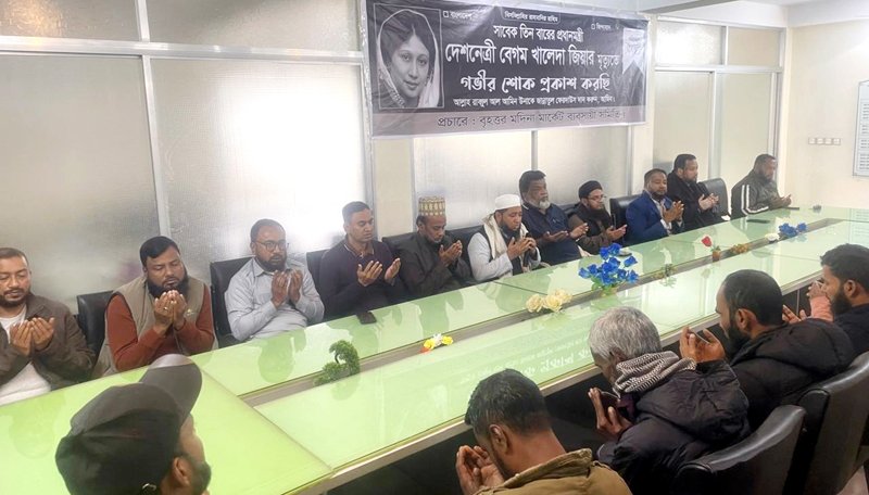সাবেক প্রধানমন্ত্রী বেগম খালেদা জিয়ার মৃত্যুতে বৃহত্তর মদিনা মার্কেট ব্যবসায়ী সমিতির উদ্যোগে বুধবার দুপুরে দোয়া মাহফিল সমিতির কার্যালয়ে অনুষ্ঠিত হয়। বৃহত্তর মদিনা মার্কেট ব্যবসায়ী সমিতির সদস্য সচিব এমদাদুল হক স্বপন এর পরিচালনায় বক্তব্য রাখেন বৃহত্তর মদিনা মার্কেট ব্যবসায়ী সমিতির সাবেক সভাপতি আমির হোসেন।