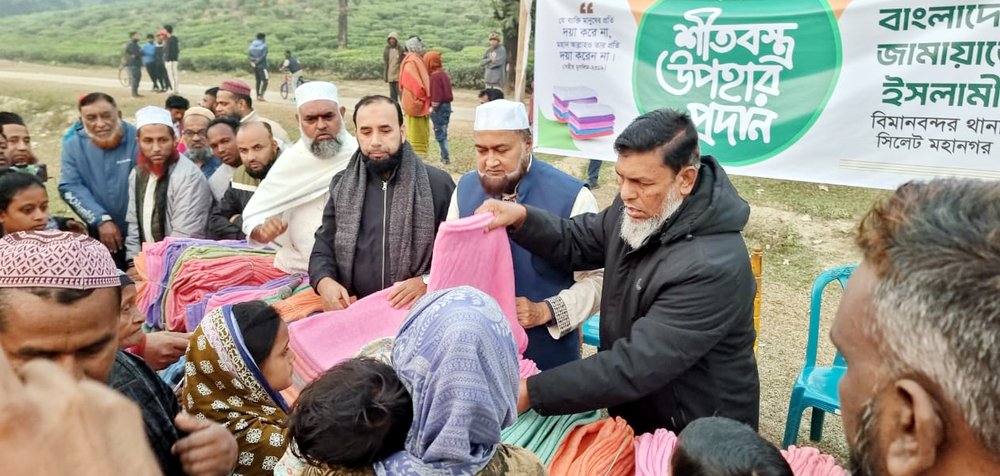 ওয়ার্ড সভাপতি আব্দুস সালামের সভাপতিত্বে ও সেক্রেটারী আহমেদুর রহমান খান হিনুর পরিচালনায় অনুষ্ঠিত শীতবস্ত্র বিতরণ অনুষ্ঠানে বিশেষ অতিথির বক্তব্য রাখেন- বিমানবন্দর থানা আমীর মো: শফিকুল আলম মফিক, নায়েবে আমীর মাওলানা আব্দুল লতিফ।
