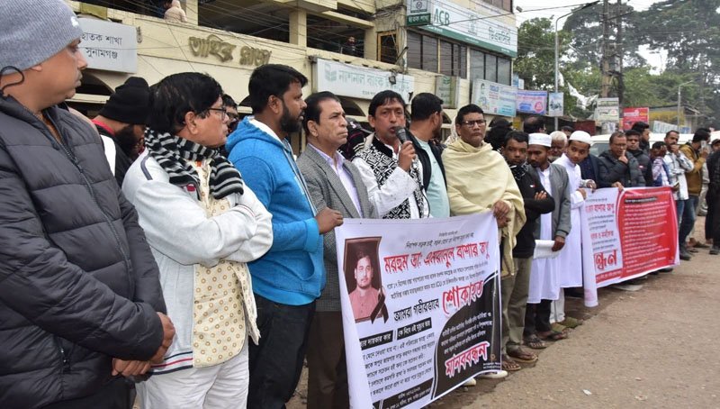 নিরাপদ-ঝুঁকিমুক্ত সড়কের দাবিতে ছাতকে মানববন্ধন