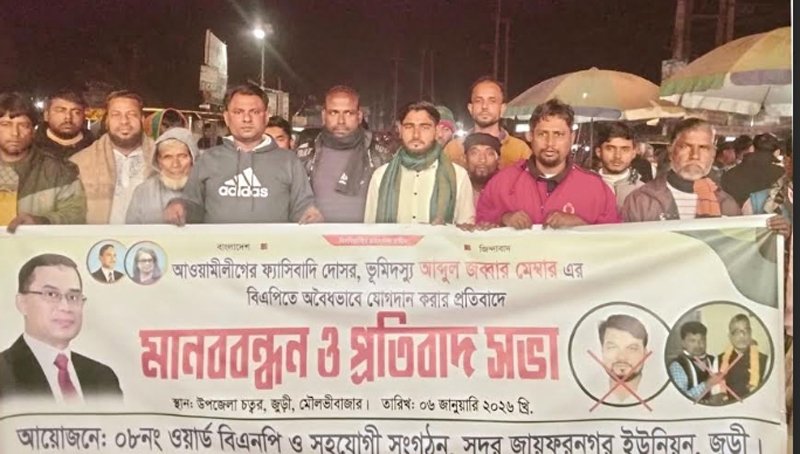 জুড়ীতে আ.লীগ নেতার বিএনপিতে যোগদানে মানববন্ধন