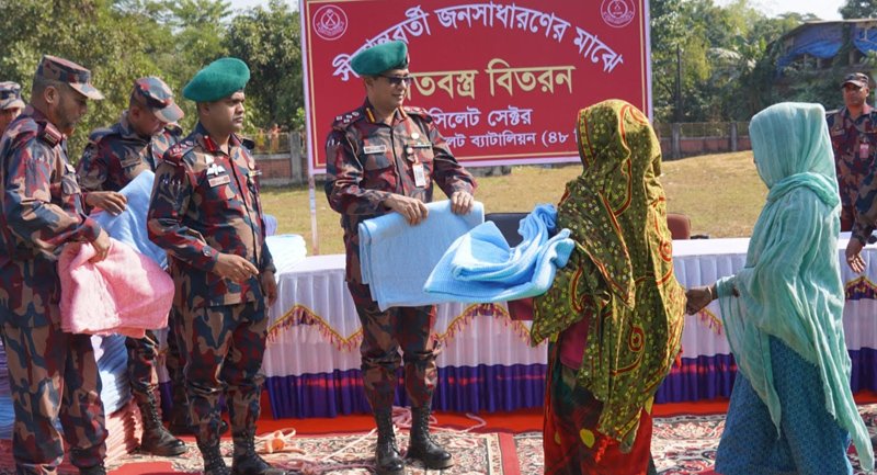 কোম্পানীগঞ্জে শীতার্ত মানুষের মাঝে ৪৮ বিজিবি’র শীতবস্ত্র বিতরণ