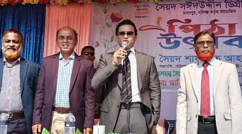 মঙ্গলবার দুপুরে কলেজ কর্তৃপক্ষের আয়োজনে পিঠা উৎসব অনুষ্ঠানে প্রধান অতিথির বক্তব্যে তিনি এসব কথা বলেন। কলেজের অধ্যক্ষ জাহির উদ্দিনের সভাপতিত্বে বিশেষ অতিথি হিসেবে বক্তব্য রাখেন উপাধ্যক্ষ মোজাম্মেল হক তালুকদার, অধ্যাপক মইন উদ্দিন, মাধবপুর পৌর বিএনপির সভাপতি গোলাপ খান, পৌর সেক্রেটারি আলা উদ্দিন আল রনি এবং কলেজ গভর্নিং বডির সদস্য ফিরোজসহ অন্যান্য নেতৃবৃন্দ। বক্তারা কলেজের সার্বিক উন্নয়নে নতুন গভর্নিং বডির উদ্যোগকে স্বাগত জানান এবং শিক্ষার গুণগত মান বৃদ্ধিতে সম্মিলিতভাবে কাজ করার প্রত্যয় ব্যক্ত করেন।