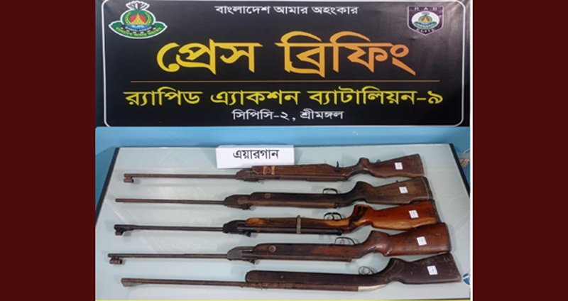 কমলগঞ্জে ৫টি এয়ারগান উদ্ধার