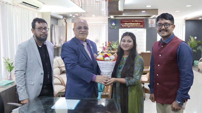 রোববার জাতীয় বিজ্ঞান ও প্রযুক্তি (এনএসটি) ফেলোশিপে খাদ্য ও কৃষি বিজ্ঞান গ্রুপে সারা দেশের মধ্যে প্রথম স্থান অধিকারী সিকৃবির মেধাবী শিক্ষার্থী রিদিমা আক্তার রিয়া ভাইস-চ্যান্সেলর প্রফেসর ড. মো. আলিমুল ইসলাম এর সাথে সৌজন্য সাক্ষাত করেন। এসময় তিনি তাকে অভিনন্দন জ্ঞাপন করে তার সফলতা কামনা করেন। তিনি বলেন, ভবিষ্যতে সিকৃবি’র শিক্ষার্থীরা বিজ্ঞান ও প্রযুক্তি গবেষণায় দেশের মধ্যে শীর্ষস্থান ধরে রাখতে সক্ষম হবে।