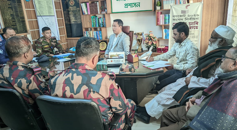 সভায় আগামী ত্রয়োদশ জাতীয় সংসদ নির্বাচনকে সামনে রেখে উপজেলার সার্বিক আইনশৃঙ্খলা পরিস্থিতির উপর গুরুত্বারোপ করা হয় এবং নির্বাচনকে সামনে রেখে সীমান্তে অনুপ্রবেশ, অস্ত্র উদ্ধার, চোরাকারবারী বন্ধে আইনশৃঙ্খলা রক্ষাকারী বাহিনীর টহল জোরদারে গুরুত্বারোপ করা হয়। এছাড়াও আসন্ন বিভিন্ন কর্মসূচিতে নিরাপত্তা ব্যবস্থা এবং জনসচেতনতামূলক কার্যক্রম নিয়ে বিস্তারিত আলোচনা করা হয়।