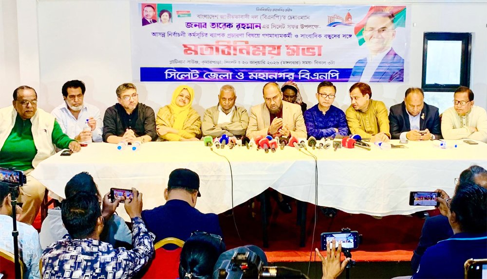 বৃহস্পতিবারের আলিয়া মাদ্রাসার সমাবেশকে সফল করতে সিলেট জেলা ও মহানগর বিএনপির উদ্যোগে মঙ্গলবার বিকেলে সাংবাদিকদের সাথে এক মতবিনিময় সভার আয়োজন করা হয়। নগরীর কুমারপাড়াস্থ একটি অভিজাত রেষ্টুরেন্টের হলরুমে উক্ত মতবিনিময় অনুষ্ঠিত হয়।