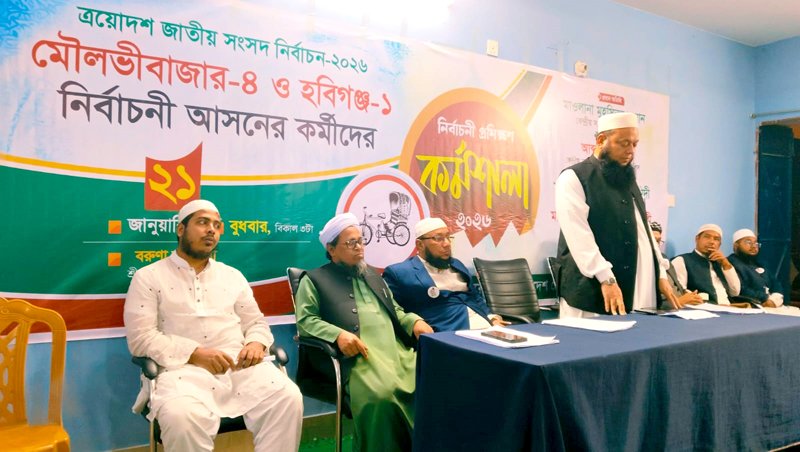 আসন্ন ত্রয়োদশ জাতীয় সংসদ নির্বাচনকে সামনে রেখে মৌলভীবাজার-৪ ও হবিগঞ্জ-১ নির্বাচনী আসনের নেতাকর্মীদের নিয়ে বাংলাদেশ খেলাফত মজলিসের উদ্যোগে প্রাক-নির্বাচনী প্রশিক্ষণ কর্মশালা অনুষ্ঠিত হয়েছে।