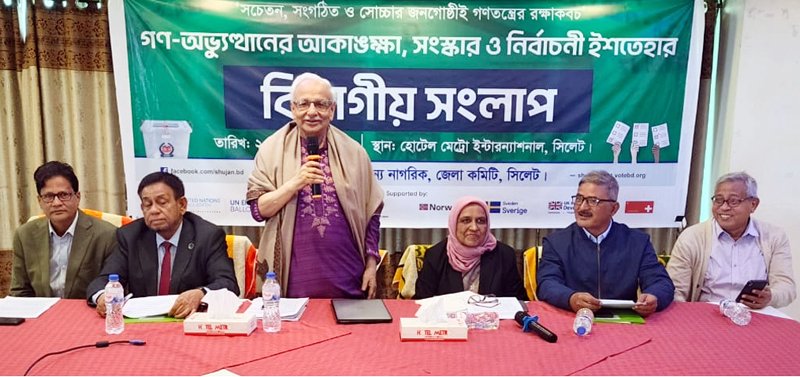 তিনি রোববার (২৫ জানুয়ারী) সকালে সুশাসনের জন্য নাগরিক (সুজন)- সিলেট জেলার উদ্যোগে গণ-অভ্যুত্থানের আকাঙ্ক্ষা, রাষ্ট্র সংস্কার ও নির্বাচনী ইশতেহার শীর্ষক বিভাগীয় সংলাপে প্রধান অতিথির বক্তব্যে উপরোক্ত কথা বলেন। সিলেট জেলা সুজনের সভাপতি শিরিন আক্তারের সভাপতিত্বে ও সাধারণ সম্পাদক মিজানুর রহমানের সঞ্চালনায় অনুষ্ঠিত সংলাপে সিলেট, সুনামগঞ্জ, হবিগঞ্জ, মৌলভীবাজার ও ব্রাহ্মণবাড়িয়া জেলা সুজনের নেতৃবৃন্দ বক্তব্য রাখেন। এতে বিভিন্ন রাজনৈতিক দলের কর্মী, এনজিও, গণমাধ্যমকর্মীসহ বিভিন্ন স্তরের সংগঠকবৃন্দ উপস্থিত ছিলেন।