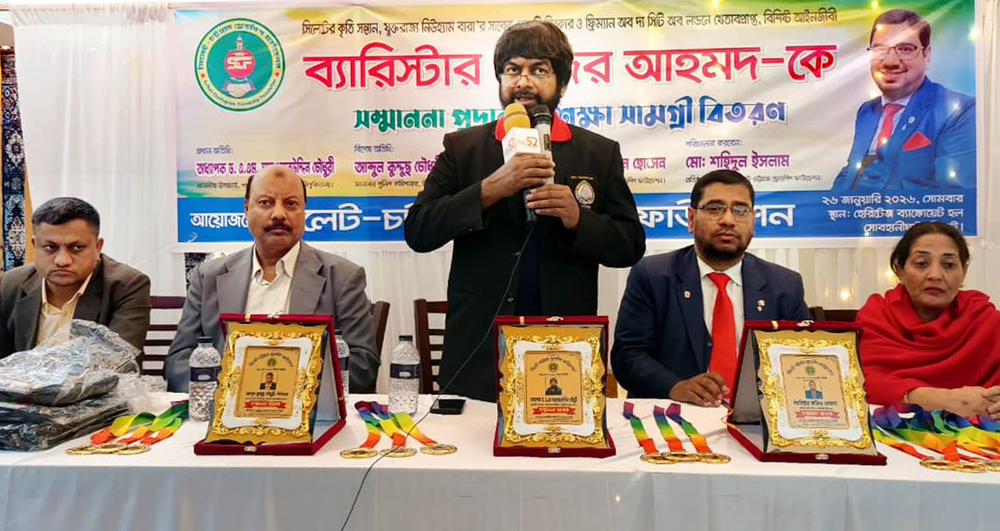 লেখক, সংবিধান বিশেষজ্ঞ, বাংলাদেশ সুপ্রিম কোর্টের আপিল বিভাগের এডভোকেট, নিউহ্যাম বারার সাবেক ডেপুটি স্পীকার ব্যারিস্টার নাজির আহমদকে সিলেট-চট্টগ্রাম ফ্রেন্ডশিপ ফাউন্ডেশনের উদ্যোগে দেয়া সংবর্ধনা অনুষ্ঠানে প্রধান অতিথির বক্তব্যে শাহজালাল বিজ্ঞান ও প্রযুক্তি বিশ্ববিদ্যালয়ের উপাচার্য প্রফেসর ড. এ এম সারওয়ার উদ্দিন চৌধুরী উপরোক্ত কথাগুলো বলেন।