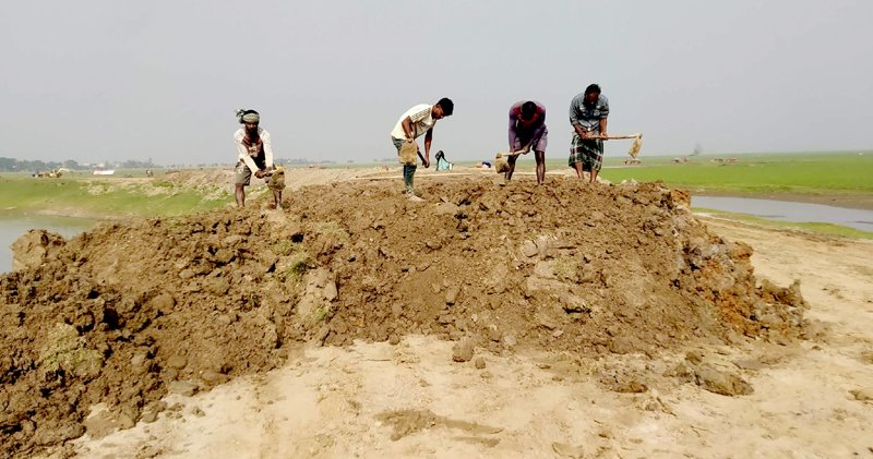 নলুয়ার হাওরে মাটি সংকটে পিছিয়ে পড়ছে বাঁধের কাজ