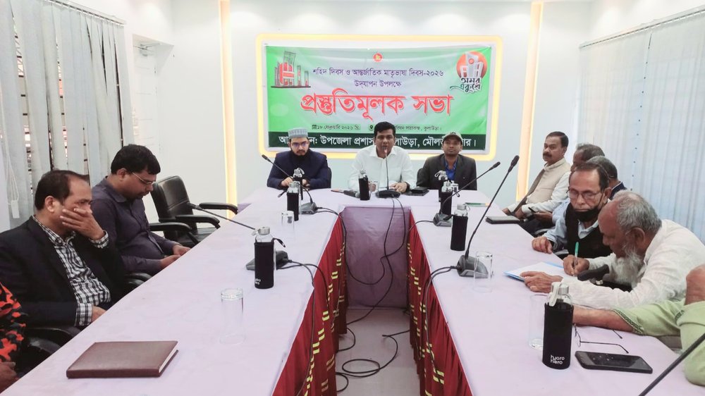 কুলাউড়া প্রতিনিধি: কুলাউড়া উপজেলা প্রশাসনের উদ্যোগে ২১ ফেব্রুয়ারী শহিদ দিবস ও আন্তর্জাতিক মাতৃভাষা দিবস যথাযথ মর্যাদায় উদযাপনের লক্ষে বুধবার পরিষদ সভাকক্ষে উপজেলা নির্বাহী কর্মকর্তা মো. মহিউদ্দিনের সভাপতিত্বে এক প্রস্তুতি সভা অনুষ্ঠিত হয় । সভায় ভাষা দিবসের শুরুতে রাত ১২ টা ০১ মিনিটে শহরস্থ শহীদ মিনারে পুস্পার্ঘ অর্পন, সূর্যোদয়ের সাথে সাথে জাতীয় পতাকা অর্ধনমিত করে উত্তোলন, বেলা সাড়ে ১১ টায় পরিষদ সভাকক্ষে আলোচনা সভা ও পুরস্কার বিতরণীর কর্মসূচি নেয়া হয়।