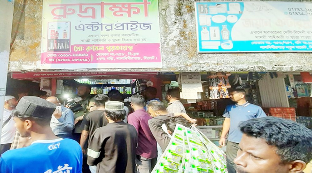 ভোক্তা অধিকার সংরক্ষণ অধিদপ্তর সিলেটের উপপরিচালক মো. আরিফ মুর্শেদ মিশু জানান, গোপন সংবাদের ভিত্তিতে জানা যায় লালদিঘীরপার হকার্স মার্কেটের বি ব্লক, ১৭নং গলির ৭৫৮নং দোকান রুদ্রাক্ষি এন্টারপ্রাইজের গুদামে প্রচুর বিক্রয় নিষিদ্ধ ভেজাল কসমেটিক্স সামগ্রী মজুত রয়েছে যা মানব দেহের স্কিন ক্যান্সারের জন্য দায়ী। এরপর তারা র্যাব-৯ সদস্যদের সহযোগীতায় অভিযান চালিয়ে এসব পণ্য জব্দ ও দোকানটির একজন কর্মচারীকে আটক করেন। পরে ৬০ হাজার টাকা জরিমানা আদায় করে আটক কর্মচারীকে ছেড়ে দেওয়া হয় এবং ওইসব ভেজাল পণ্য প্রকাশ্যে পুড়িয়ে ফেলা হয়েছে। এসময় অবৈধভাবে আমদানিকৃত নকল অলিভওয়েলসহ বিভিন্ন ধরনের ভারতীয় পণ্যও জব্দ করা হয়।