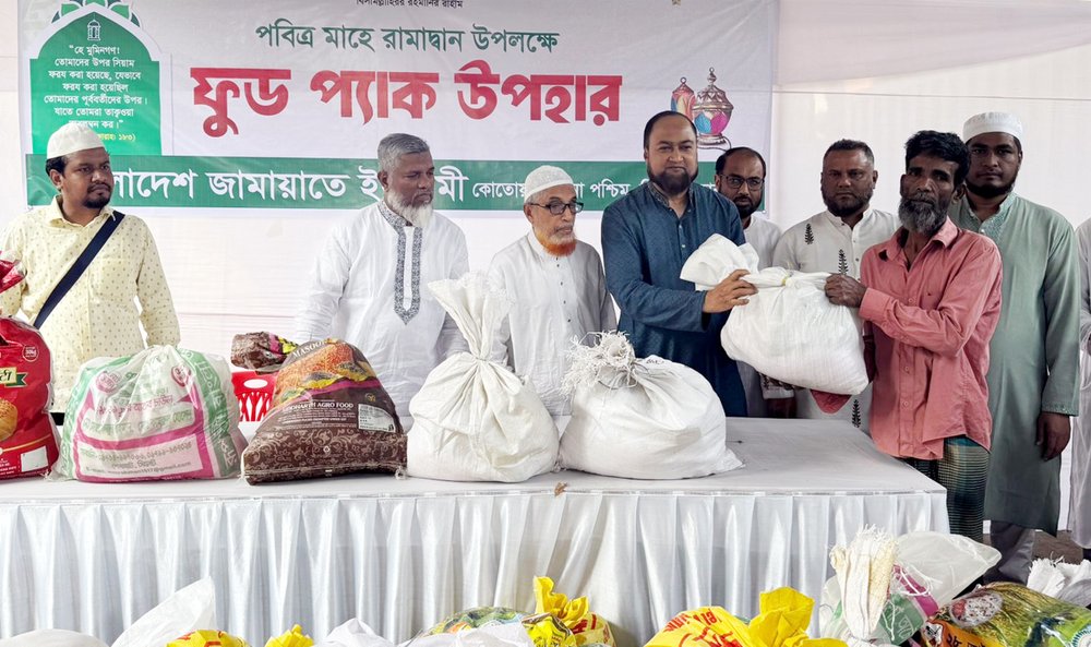 তিনি সোমবার বিকেলে নগরীর শেখঘাট এলাকায় সিলেট মহানগরীর কোতোয়ালী পশ্চিম থানা জামায়াতের উদ্যোগে হতদরিদ্র মানুষের মাঝে রামাদ্বান ফুডপ্যাক উপহার বিতরণকালে প্রধান অতিথির বক্তব্যে উপরোক্ত কথাগুলো বলেন।