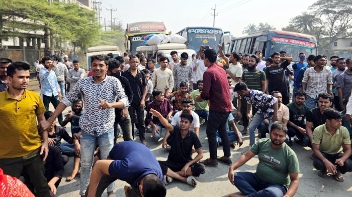 স্থানীয় সূত্র জানায়, সকাল থেকে মহাসড়কের মূল পথগুলোতে শ্রমিকরা বসে থাকায় যানবাহনগুলো সাময়িকভাবে চলাচল করতে পারছিল না। পুলিশ ও র্যাপিড অ্যাকশন ব্যাটালিয়নের সদস্যরা ঘটনাস্থলে উপস্থিত হয়ে পরিস্থিতি পর্যবেক্ষণ করেন। তবে সরাসরি কোনও সংঘর্ষ বা উত্তেজনার খবর পাওয়া যায়নি।