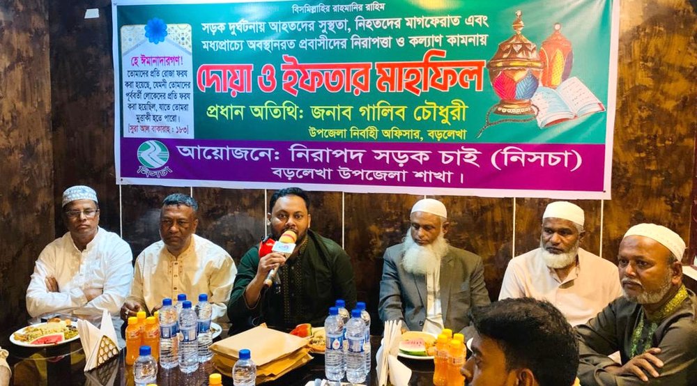 তিনি শুক্রবার মৌলভীবাজারের বড়লেখা উপজেলায় সড়ক দুর্ঘটনায় আহতদের সুস্থতা, নিহতদের মাগফেরাত এবং মধ্যপ্রাচ্যে অবস্থানরত প্রবাসীদের নিরাপত্তা ও কল্যাণ কামনায় ‘নিসচা’ বড়লেখা শাখা আয়োজিত দোয়া ও ইফতার মাহফিলপূর্ব আলোচনা সভায় প্রধান অতিথির বক্তব্যে এসব কথা বলেন। দোয়া মাহফিল পরিচালনা করেন মাওলানা আব্দুল্লাহ আল মারুফ।