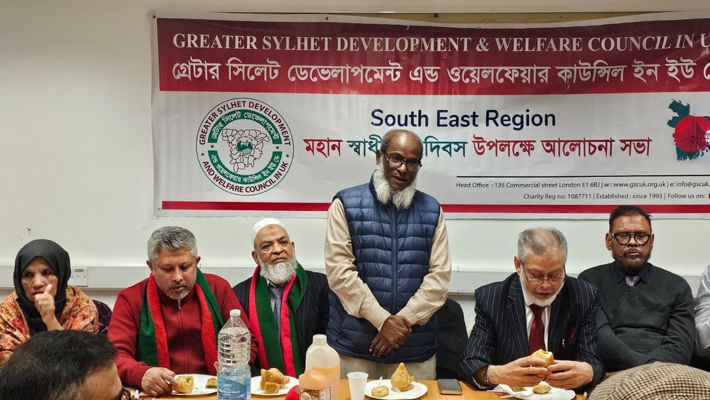 তিনি বুধবার গ্রেটার সিলেট ডেভোলাপমেন্ট এণ্ড ওয়েলফেয়ার কাউন্সিল ইন ইউকে সাউথ ইষ্ট রিজিয়নের উদ্যোগে মহান স্বাধীনতা দিবস উপলক্ষে আলোচনা সভায় প্রধান অতিথির বক্তব্যে একথা বলেন। জিএসসির কেন্দ্রীয় কার্যালয়ে সংগঠনের কেন্দ্রীয় চেয়ারপার্সন খলিল আহমদ কবিরের সভাপতিত্বে ও সাউথ ইষ্ট রিজিয়নের সাধারণ সম্পাদক সূফী সুহেল আহমদের পরিচালনায় সভায় বিশেষ অতিথি হিসেবে বক্তব্য রাখেন, কাউন্সিলার সদরু জামান খান, জিএসসির কেন্দ্রীয় সহ-সভাপতি মীর্জা আসহাব বেগ, জিএসসির সাবেক কেন্দ্রীয় চেয়ারপার্সন ব্যারিস্টার আতাউর রহমান, টাওয়ার হেমলেট কাউন্সিলের সাবেক স্পীকার আবাব হোসেন, কাউন্সিলার ফয়জুর রহমান, জেএসসির সাবেক কেন্দ্রীয় সাংগঠনিক সম্পাদক দেলওয়ার হোসেন দিলু, জেএসসির এডভাইজার মানিক মিয়া, কমিউনিটি নেতা পারভেজ সাজ্জাদ কোরেশী, সাংবাদিক মিসবাহ জামাল, জকিগঞ্জ ওয়েল ফেয়ারের সেক্রেটারী মাওলানা আবদুল কুদ্দুস, সদর ট্রাস্টের সেক্রেটারী নাজমুল হোসেন। সভার শুরুতে পবিত্র কোরআন থেকে তেলাওয়াত করেন হামজা রহমান।